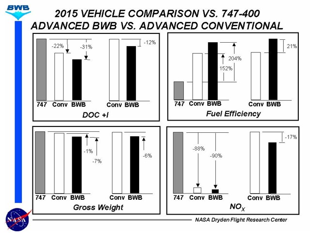 In an overlay comparison of the BWB to the 747, you can graphically see