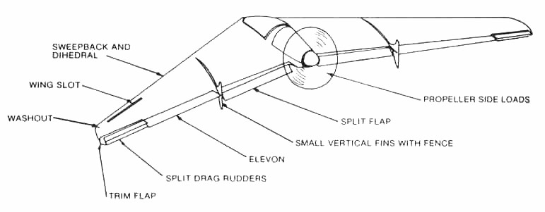 The elevons combine the standard functions of both elevator and aileron